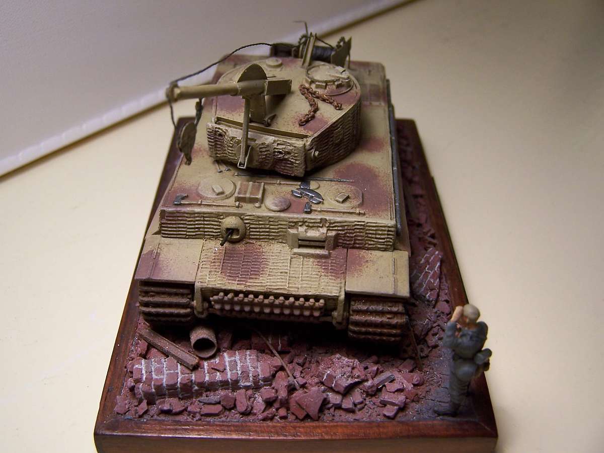 The sturmtiger rockets are cast from plaster as is the ruin, separate bricks and the town square. Although the street was meant to look cleaned