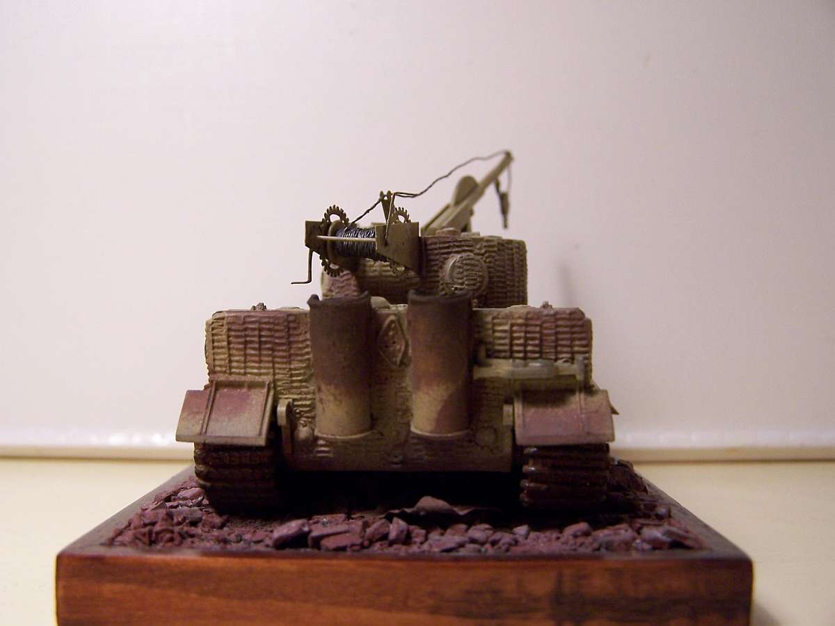 I bought the planet model bergetiger as my first resin kit. Personally I don't like resin, but some subjects are hard to get in 1/72 plastic. (This was pre-dragon). It really was disappointing for me, the only parts I ended up using where the turret and the PE, even the boom had to be rebuilt. Both tiger I's where left over from the kannonierschule dio. This was my first attempt at zimmerite with a homemade tool from the side of a cd case. The vehicle could have done with some more scratch details and a better paint job. My airbrushing abilities and equipment both need desperate upgrading, but practice makes perfect. De rubble was made in the usual manner from plaster casting.
