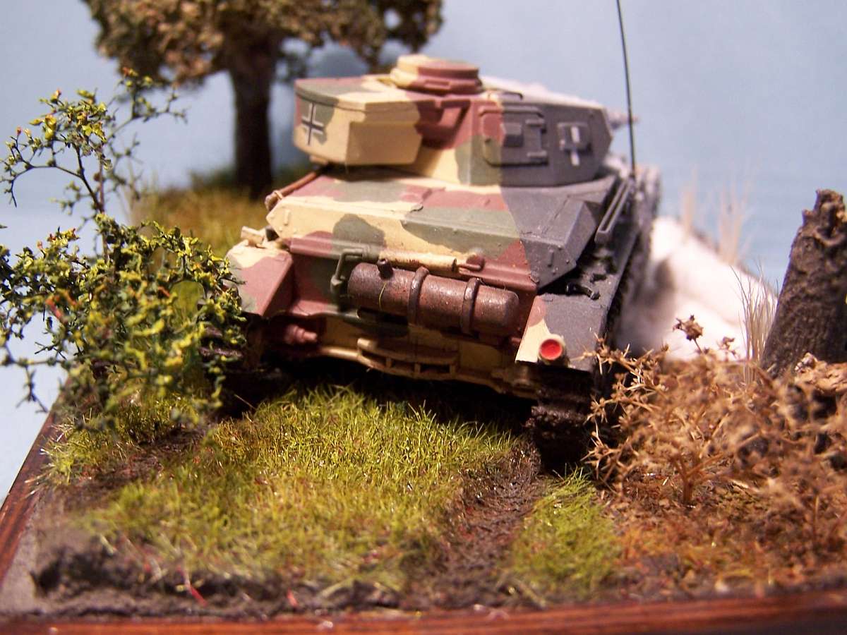 I very much liked the idea of showing several types of camouflage used by the Germans in one setting. It took a while to find the right panzer that could have worn them all. As it turns out there was a particular ausf. C that was used right up to the end of the war in Normandy. I’ve read some negative things about the Mirage kit, but I must say I like it very much. It comes together great. It was rather difficult to show the difference between spring and summer, but I like the way autumn came out.