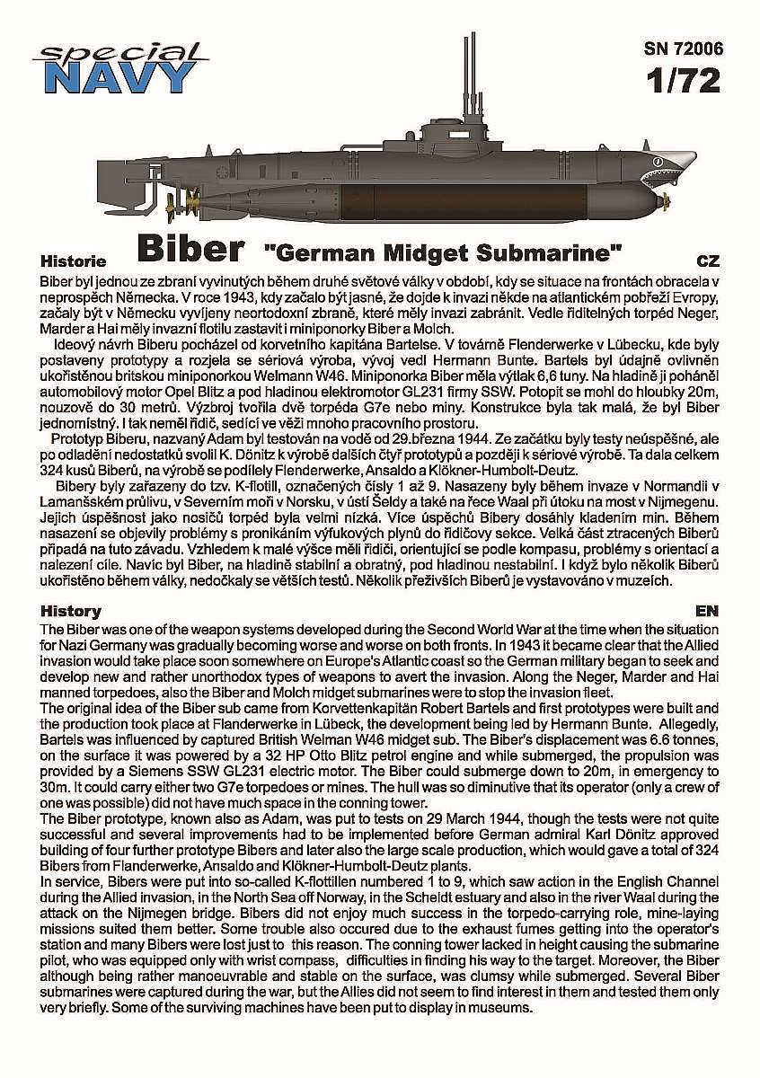 Kit sn72006 - German Submarine "Biber"